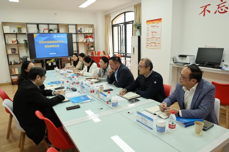 本次交流紧扣高质量发展主题,围绕党建引领、人才培养、社会服务、数字化转型等议题开展深度研讨。大家一致认为,大学生命力之所系,既在于全日制教育对学术根基的坚守与创新,也在于继续教育对社会发展的响应与赋能。二者共生协同,回应时代的全面需求。我校德语、西班牙语等欧洲语种底蕴深厚,有巨大的社会需求。继续教育学院与德语系、西方语系达成多项合作共识,确立了以“资源共享、优势互补”为主线的协同发展路径:聚焦育人实效,依托上海外语口译证书考试品牌优势,打造学生“多语种+口译”核心竞争力;聚焦资源转化,将德语、西班牙语等专业优势转化为社会培训、考试认证等教育服务高端新产品;聚焦数字赋能,共享人工智能技术应用经验、联合开展教师数字化能力培训、共建数字化教育资源库。