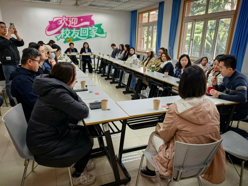 2025年12月6日,继续教育学院“终身学习·薪火相传”校友返校日活动在虹口校区3号楼412室举行。来自各行各业的约三十位校友重返母校,与学院领导、老师齐聚一堂,共庆上海外国语大学76周年华诞,在温馨热烈的氛围中回望求学时光,畅谈成长经历,共话未来发展。活动由学院副院长郑琼主持。