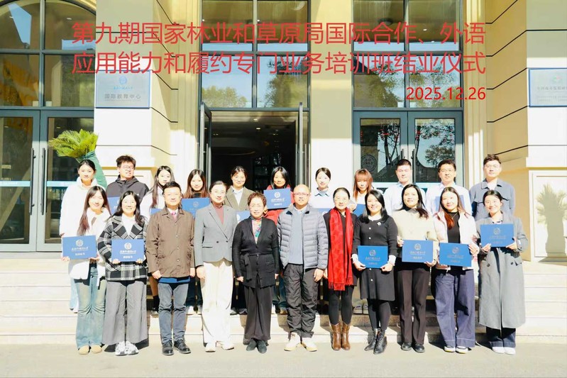 吴慧代表承办单位对国家林业和草原局长期以来的信任与支持表示感谢。她指出,学校高度重视与国家林草局的合作项目,充分发挥学科与国际化平台优势,着力拓展学员的国际视野、增强跨文化沟通能力,助力林草领域国际合作人才培养。曹姝婧对本期培训教学工作进行总结。她表示,学员严守纪律、潜心研学、学用相长,圆满完成全部学习任务,专业英语应用能力和履约专门业务能力得到了显著提升。