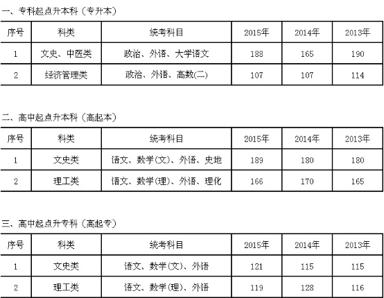 2013~2015年上海市成人高校招生最低录取控制分数线